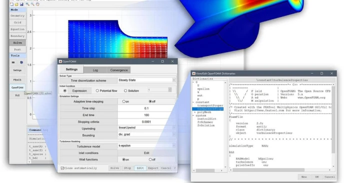 O OpenFOAM oferece uma ampla gama de recursos para resolver desde fluxos de fluidos complexos envolvendo reações químicas, turbulência, transferência de calor, escoamentos multifásicos, acústica e eletromagnetismo. O OpenFOAM resolve numericamente as equações completas de Navier-Stokes (equações de conservação de massa, de quantidade de movimento e energia), por meio de uma metodologia de Volumes Finitos.